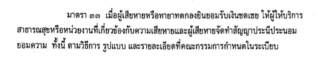 1. ตามมาตรา 33 ได้ระบุให้มีการทำสัญญาประนีประนอมยอมความหลังได้รับเงินชดเชย