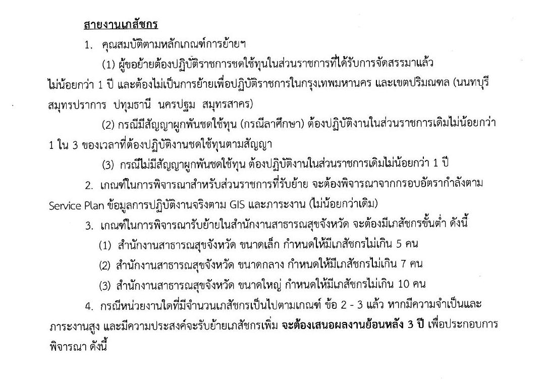 เภสัชใช้ทุนบรรจุ 1 เมษา ของทุกปี หนึ่งสือเวียนย้ายมาเดือน ธันวาของทุกปี ก็เขียนย้ายไปก่อน เพราะถ้าได้อนุมัติย้าย กระทรวงจะให้ไปปฎบัิติงานที่ใหม่ในเดือน วันที่ี 1 พ.ค. ของปีถัดไป เพราะฉะนั้นครบ 1 ปี พอดี จึงไม่ขัดหลักเกณฑ์