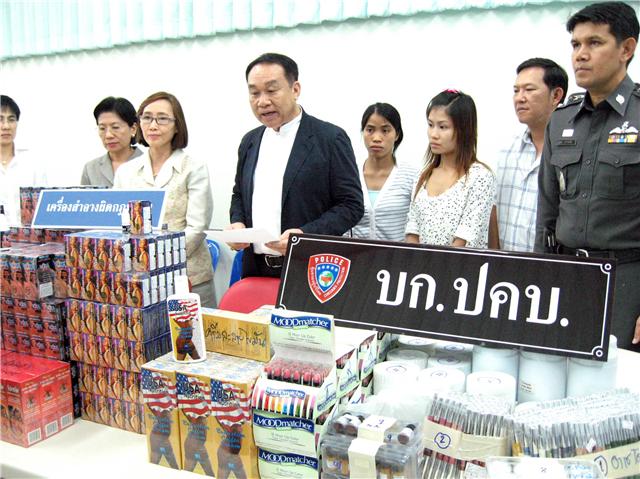 บก.ปคบ.บุกตรวจจับเครื่องสำอางกระชับช่องคลอดสร้างสมรรถภาพทางเพศ กว่า 5 พันชิ้น มูลค่า 6 แสน พร้อมรวบสองสาวลูกจ้างร้านขายส่งเครื่องสำอางปลอมกลางตลาดใหม่ดอนเมือง รับสารภาพทราบมาตลอด 6 ปี เจ้านายยัดเงินเจ้าหน้าที่รัฐบางหน่วย หนีการจับกุม