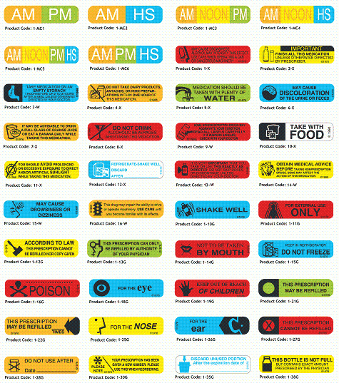 การติดฉลากช่วยหน้าซองเวลาเราจ่ายยาให้คนไข้ ถ้าเราติดฉลากช่วยเพิ่มเติม จะทำให้คนไข้ทราบว่า เภสัชกรมีความตั้งใจที่จะแนะนำหรือกำชับการใช้ยา มีการใส่ใจมากเป็นพิเศษ ซึ่งหาไม่ได้จากร้านยาทั่วๆไป ฉลากช่วยก็เหมือนทั่วๆไปครับ แต่กำลังจะบอกว่า ถ้าฉลากช่วยมีรูปภาพประกอบไปด้วย นอกจากจะมีข้อความเพียงอย่างเดียว ความน่าสนใจก็จะมีมากขึ้น เช่น ถ้าบอกว่า ระวังการขับรถ ก็มีรูปรถพร้อมขีดห้าม เพิ่มเข้าไป ห้ามใช้กับสตรีมีครรภ์หรือให้นมบุตร มีรูป หรือ ทานพร้อมอาหาร ก็มีรูปอาหาร หรืออย่างอื่นๆ ก็แทรกรูปที่เกี่ยวข้องเข้าไปในฉลากยา จะทำให้ดูน่าสนใจ และสื่อสารให้เข้าใจมากขึ้น ตัว Sticker จะมีสีสันก็แล้วแต่ ก็ลองดูฉลากช่วยในต่างประเทศ ตามรูปนะครับ เอามาให้ดูตัวอย่าง อาจจะนำไปดัดแปลงนะครับ ใช้ โปรแกรม Paint ตกแต่งเองนะครับ นี่แหละสิ่งเล็กๆน้อยๆที่เภสัชกรให้ความใส่ใจ มันสื่อไปในทางดีกับคนไข้ครับ