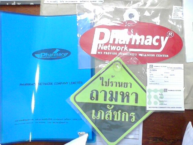 สมัครเเล้วจะได้ป้าย เข้าร้านยาถามหาเภสัช (เห็นที่หลายๆคนอยากได้กัน) นอกจากนี้มี สินค้าที่ทางบริษัทจำหน่ายสำหรับผู้จะทำร้านยาคุณภาพ(เค้าจะส่งโปรดักลิส มาให้ด้วย) เช่น ซองสีชา บัตรประจำตัวผู้ป่วย ใบบันทึประวัตผู้ป่วย สติกเกอร์สีสำหรับติดวันหมดอายุ