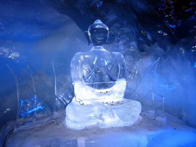 ในถ้ำน้ำแข็งมีพระพุทธรูปที่แกะจากน้ำแข็งด้วย
