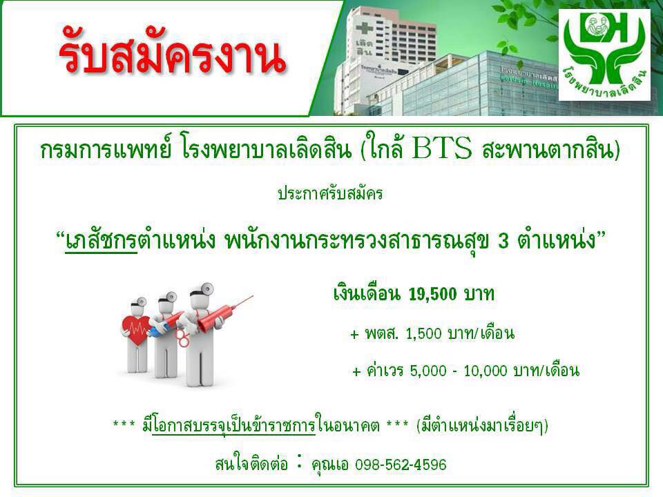 รพ.เลิดสิน รับสมัครเภสัชกร full-time จำนวน 3 ตำแหน่ง ด่วน!!!