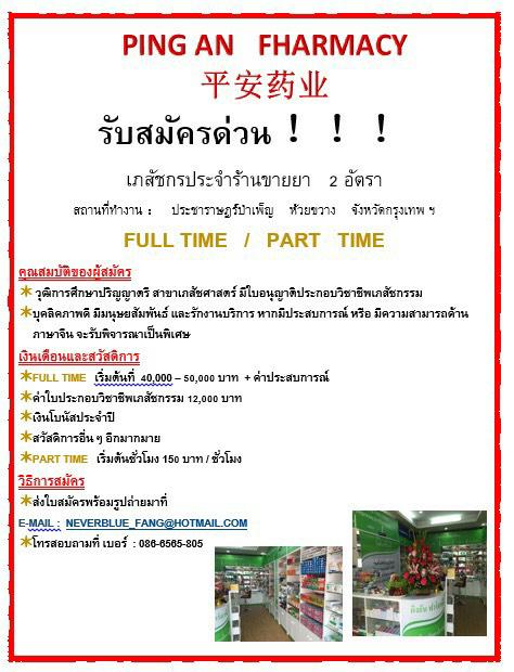รับสมัครเภสัชกร ด่วนค่ะ
