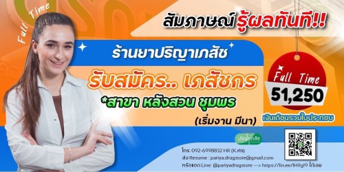 ส่ง Resume Email: pariya.drugstore@gmail.com