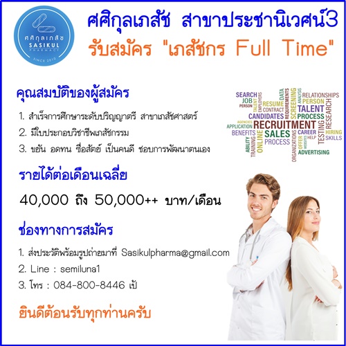 1. ส่งประวัติพร้อมรูปถ่ายมาที่ Sasikulpharma@gmail.com