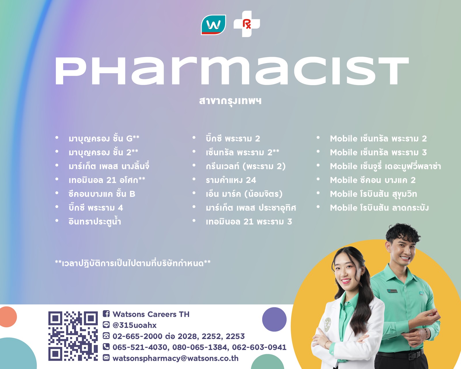 หรือส่ง resume มาที่ watsonspharmacy@watsons.co.th