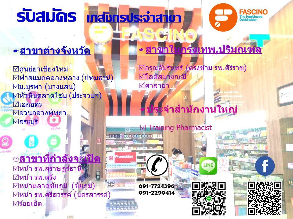 Re: FASCINO รับสมัคร เภสัชกรประจำสาขาทั่วประเทศ สนใจดูรายละเ
