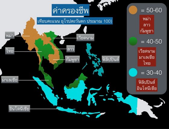 ทำไมต้องเปรียบกับมาเลเซีย เพราะเศรษฐกิจพอๆกัน มาดูค่าครองชีพของทั้ง2ประเทศก่อนว่าเป็นอย่างไร จะได้ไม่เกิดความคลางแคลงใจว่า ถ้าค่าครองชีพต่างกันหรือคล้ายกันแล้วจะเทียบกันได้อย่างไร ตามภาพบนที่ได้แสดงไปในตอนที่แล้ว จะเห็นว่า ประเทศไทยและมาเลเซีย อยู่ในกลุ่มเดียวกัน ที่มีค่าครองชีพคิดเป็น คะแนนคือ40-50 ดังนั้นเรื่องค่าครองชีพจึงไม่ใช่เงื่อนไขที่จะมาแย้งกันว่าเพราะเขามีค่าครองชีพที่สูงกว่ารายได้เขาก็ต้องมากกว่า อันนี้จะไม่มีเรื่องค่าครองชีพมาเกี่ยวข้องเพราะอยู่ในกลุ่มเดียวกัน แต่!!!!!!!