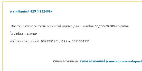 ขอแทรก:-ในเคสที่เจ้าของงานปกปิดเรื่องค่าแรงแล้วอ้างโน่นนี่นั่น อย่าเสียเวลาติดต่อไปเลย มันไม่ได้อย่างที่คิดหรอก. อีกอย่างมันแสดงถึงความจริงใจของเจ้าของงานแค่ไหนคิดกันได้เองมั้ง แต่ถ้ามีผู้ท้วงติงแล้วเจ้าของงานมีการแก้ไขข้อมูลและค่าแรงในประกาศให้เหมาะสม แม้จะดูไม่คลีนนัก แต่ก็ดีกว่าไม่ปรับปรุง บางรายมักอ้างว่าต้องมีคุยสอบถามโน่่นนี่นั่นก่อน แต่มันก็บอกเป็นช่วงรายได้โดยประมาณได้ ถ้าเจ้าของงานไม่มีอะไรในใจ