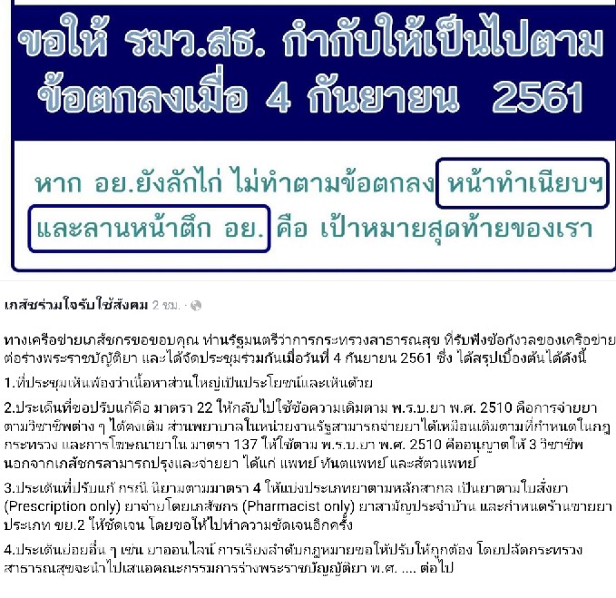 -ให้Pharmacy License ของเภสัชกรทุกคนที่ถูกสั่งพักเพราะกฎข้อบังคับนี้ ยังใช้งานได้ต่อไป
