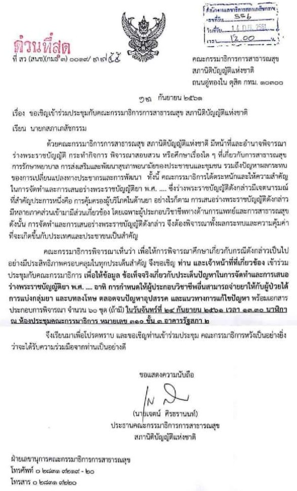 นายพุทธิพงษ์ ปุณณกันต์ รองเลขาธิการนายกรัฐมนตรี ปฏิบัติหน้าที่โฆษกประจำสำนักนายกรัฐมนตรี เปิดเผยว่า ที่ประชุมคณะรัฐมนตรี(ครม.) วันที่ 13 พ.ย. ว่า ครม. อนุมัติหลักการร่าง พ.ร.บ. ยา (ฉบับที่ …) พ.ศ. … ซึ่งเป็นการแก้ไขปรับปรุง พ.ร.บ.ยา พ.ศ. 2510 ด้วยสภาวะการที่เปลี่ยนไป บัญชียา สภาวิชาชีพและผู้ที่เกี่ยวกับยามีการพูดคุยให้ปรับปรุงให้ทันสมัยเหมาะสมกับปัจจุบัน จึงให้มีการแก้ไข โดยกำหนดคณะกรรมการ อนุกรรมการ เพื่อพิจารณากำหนดหลักเกณฑ์ วิธีการ เงื่อนไข ที่ได้มาซึ่งผู้เชี่ยวชาญ องค์กรผู้เชี่ยวชาญ และการขึ้นบัญชียา ให้กระบวนการอนุญาตรวดเร็วและมีประสิทธิภาพมากขึ้น นอกเหนือจากเจ้าหน้าที่สำนักงานคณะกรรมการอาหารและยา(อย.)