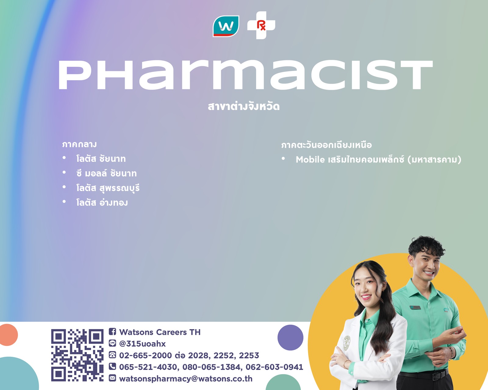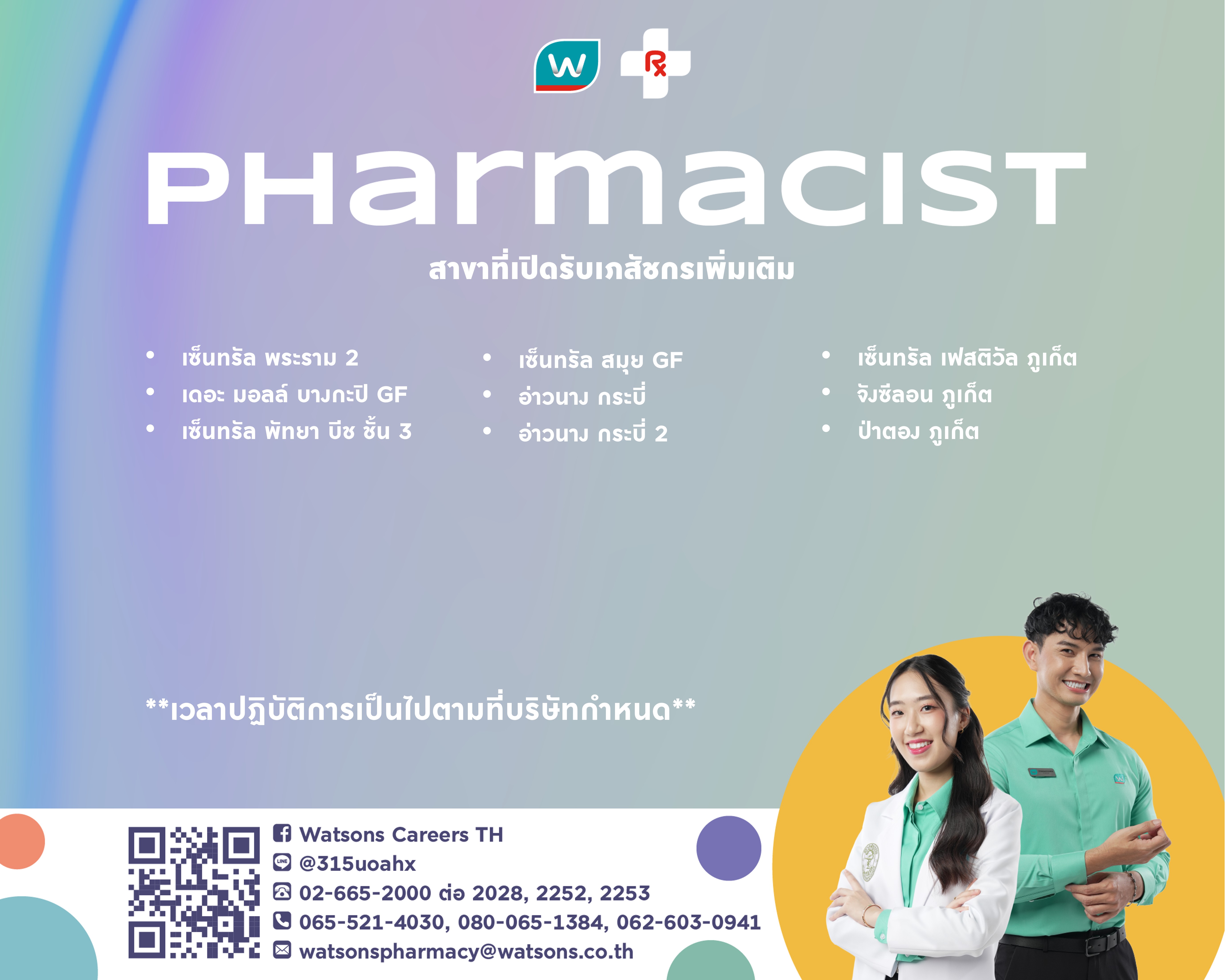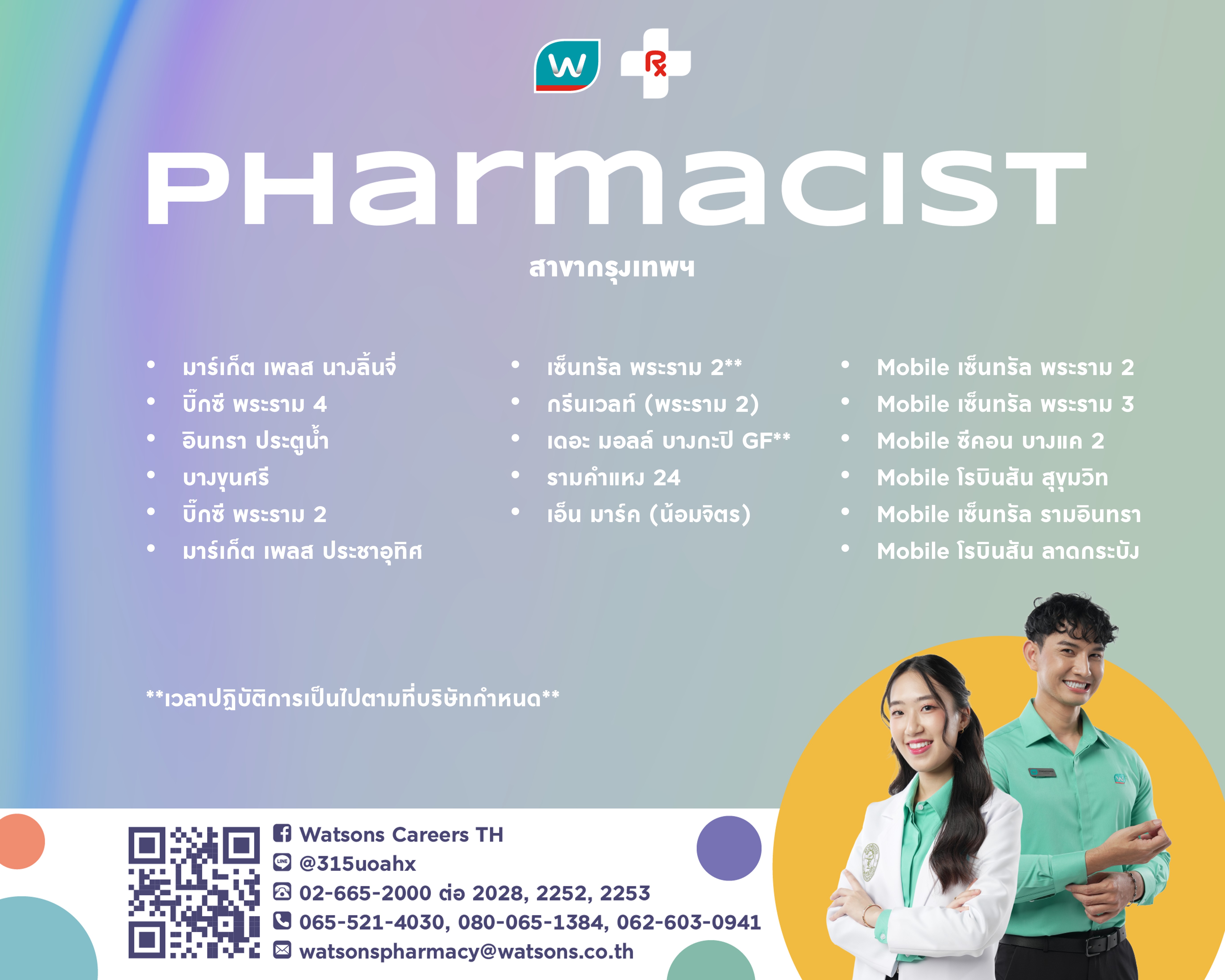 WatsonsPharmacyThailandMobile: 065-521-4030, 080-065-1384, 062-603-0941 Tel: 02-665-2000 ext.2252, 2028, 2253 E-mail: watsonspharmacy@watsons.co.th Line ID: @315uoahx