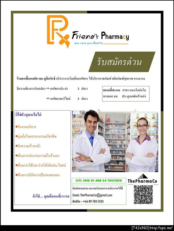เภสัชกรพาร์ทไทม์ 2 ตำแหน่ง