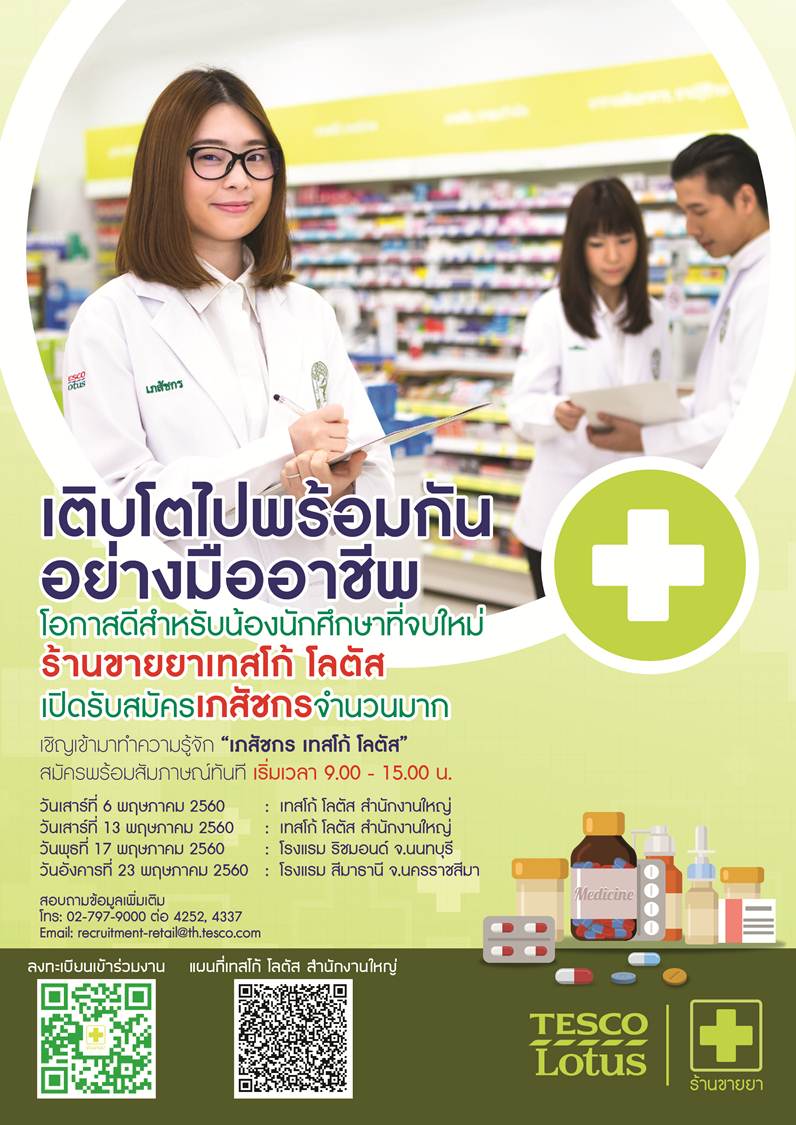 :biggrin:ร้านยา เทสโก้ โลตัส เปิดรับสมัครงานเภสัชกร