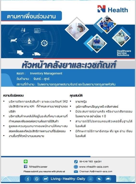 Re: รับสมัครหัวหน้าคลังยา N Health รพ.กรุงเทพสนามจันทร์ นครป