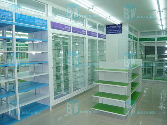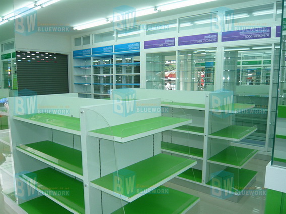 ชั้นวางยา สามารถทำได้หลายรูปแบบ ไม่ว่าจะเป็น ชั้นไม้ หรือ ชั้นกระจก ซึ่งความสำคัญของการเลือกใช้วัสดถุก็คือความแข๋งแรงคงคน วันนี้ ทางบลูเวิร์คขอสำเสนอการผสมผสานของการใช้ชั้นไม้และชั้นกระจก ชั้นไม้อาจจะใช้กับสิ้นค้าที่มีน้ำหนักมาก เพื่อป้องกันการหล่นแตงหรือเสียหาย ส่วนชั้นกระจก จะทำให้ตู้ดูกวางขึ้น
