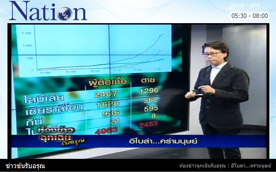 ผู้นำสหรัฐอเมริกาเตรียมส่งกองกำลังไปดูเเลการระบาดของไวรัสอีโบล่าในเเอฟริกาตะวันตกเเล้ว หลังจากยอดผู้เสียชีวิตทวีจำนวนขึ้น เเม้วันนี้จะมีผู้อาสาทดลองวัคซีนตัวใหม่ในการหยุดยั้งไวรัสชนิดนี้เเล้วก็ตาม เเต่มันจะหยุดยั้งได้หรือไม่วิเคราะห์โดยสุทธิชัย หยุ่นเเละพรรณี วิพุธพนิช บก.โต๊ะรายงานพิเศษ