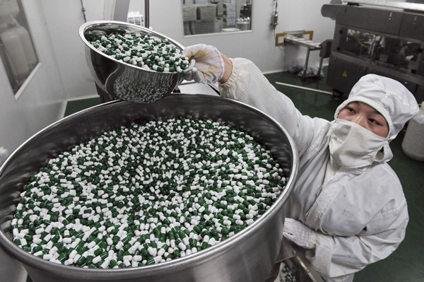 คนงานกำลังบรรจุแคปซูลยาสิทธิบัตรจีนสำหรับใช้รักษาผู้ติดเชื้อไข้หวัดนกกลายพันธุ์ใหม่ H7N9 ที่เมืองปั๋วโจว มณฑลอันฮุย วันที่ 8 เม.ย. รัฐบาลจีนได้ระบุยานี้ในแผนการวินิจฉัยและรักษาโรคไข้หวัดนก H7N9 (ภาพ รอยเตอร์)