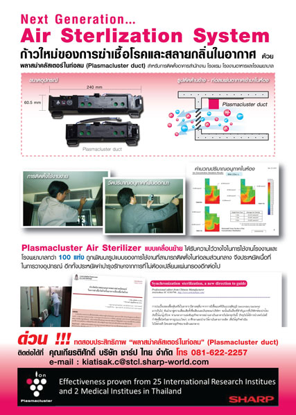 Plasmacluster duct ติดตั้งที่ท่อลมปรับอากาศส่วนกลาง ไม่กินเนื้อที่ ไม่มีค่าบำรุงรักษาในการเปลี่ยนแผ่นกรอง ... ฆ่าเชื้อโรคทันที
