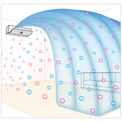 ลมที่พ่นออกมาจากท่อ เข้าสู่ในห้อง จะมีอนุภาคพลาสม่าคลัสเตอร์ ออกมาตามลมด้วย จึงเป็น clean air ที่สามารถทำลายเชื้อโรคที่อยู่ในห้องได้ด้วย ไม่ว่าจะมาจากพาหะที่เป็นคนสู่คน ด้วยกันเอง