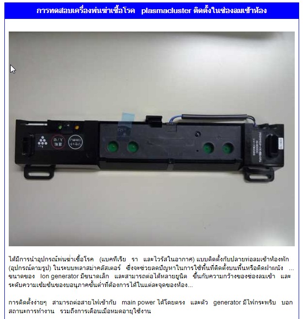 Re: สำหรับโรงพยาบาลที่สนใจทดสอบระบบฆ่าเชื้อโรค ทั้งการตั้งรั