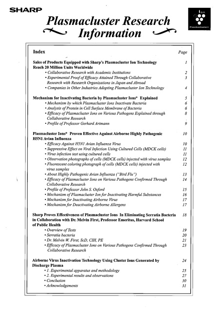 รวมผลงานวิจัยทดสอบ plasmacluster ในการทำลายเชื้อ Influenza virus , bird flu , swine flu , coxsakie virus