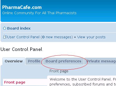 ไปที่ User Control Panel ด้านบนซ้าย ข้างล่าง Board Index ครับ