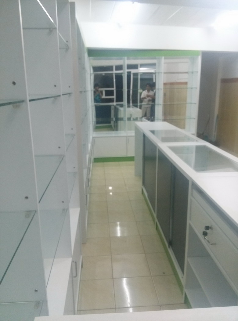 รับผลิตเฟอร์นิเจอร์ร้านขายยา โรงพยาบาล คลินิค เคาน์เตอร์ร้านขายยา ตู้โชว์ยา ผลิตโดยใช้ไม้MDF ภายนอกหุ้มด้วยแผ่นลามิเนต(โฟเมก้า)กันน้ำ ภายในพ่นสี งานที่มีมาตรฐาน แข็งแรง เช็ดทำความสะอาดง่าย ทนรอยขีดข่วนและความร้อน