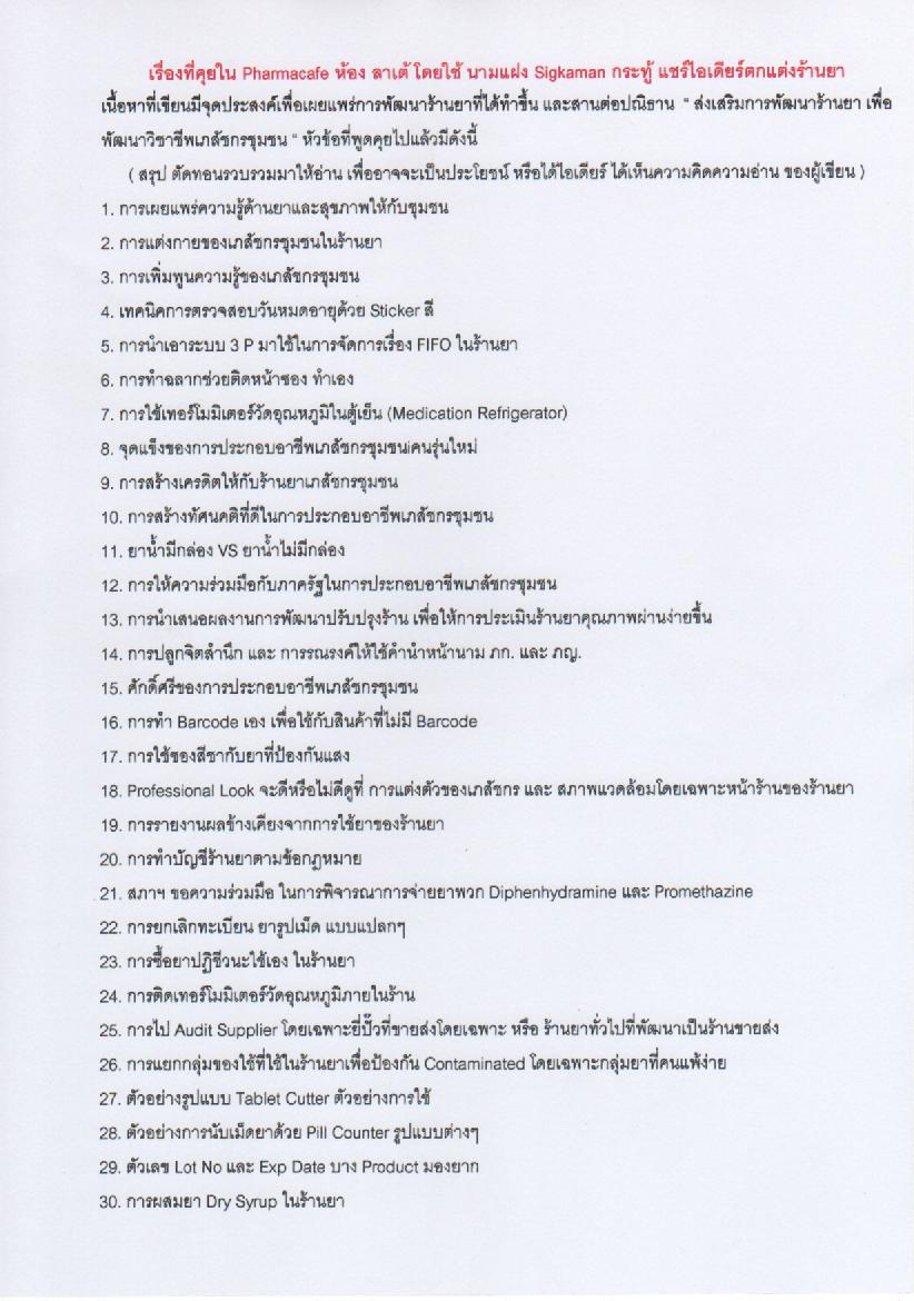 อีกเรื่องครับ วันนี้คุยหลายเรื่อง หยุดเรื่องการพัฒนาร้านสักวัน มันรู้สึกว่าการพัฒนาวิชาชีพนอกจากการพัฒนาร้านแล้ว เรื่องอื่นๆก็สำคัญกับวิชาชีพเภสัชกรชุมชนนะครับ