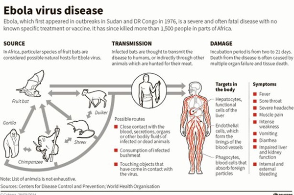 ทั้งนี้ การแพร่ระบาดของเชื้อไวรัสมรณะระลอกล่าสุดในภูมิภาคแอฟริกาตะวันตกนี้ เริ่มปะทุขึ้นในเขตป่าลึกทางตะวันออกเฉียงใต้ของประเทศกินี เมื่อเดือนกุมภาพันธ์ ก่อนจะลุกลามเข้าสู่เขตเมืองและแพร่กระจายไปยังประเทศเพื่อนบ้านทั้งไลบีเรียและเซียร์รา ลีโอน โดยองค์การอนามัยโลก (World Health Organisation:WHO )ยืนยันว่า จำนวนผู้เสียชีวิตจากการติดเชื้ออีโบลาในทั้ง 3 ประเทศได้เพิ่มเป็น “มากกว่า 600 รายแล้ว”