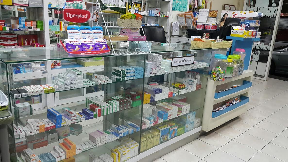 - ตู้กระจกยาครีมกลางร้าน 3 ตู้