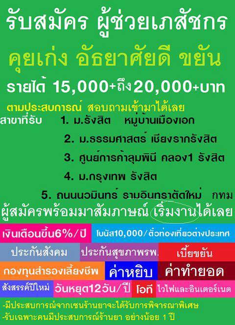 Re: รับสมัครเภสัชกรร้านยา รายได้รวม 40000+ รังสิต-นวมินทร์