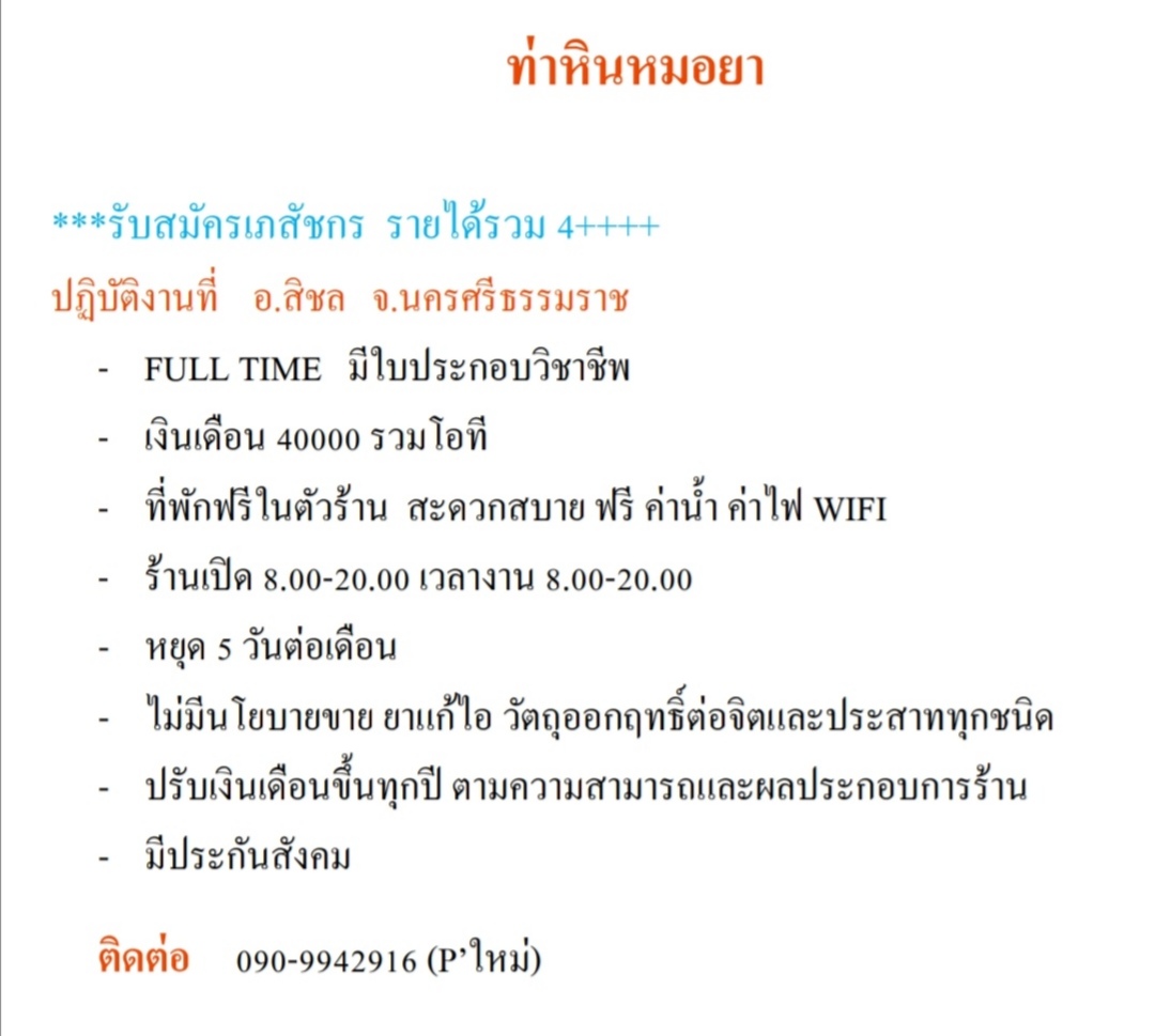 รับเภสัชFTมีใบประกอบ​จ.นครศรีธรรมราชรายได้4++++