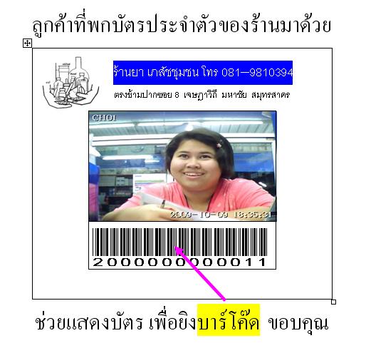 ถ้าทำไปนานๆ เราอาจจำชื่อลูกค้า คนนั้นๆได้ ไม่ต้องค้นจากแฟ้มภาพลูกค้าก็ได้ แต่ก็มีลูกค้าชั้นดีที่ให้ความสำคัญของการจัดเก็บข้อมูลของเขา เขาก็จะเอาบัตรมาด้วย ก็ยิงบาร์โค๊ดที่บัตรลูกค้า ก็ได้