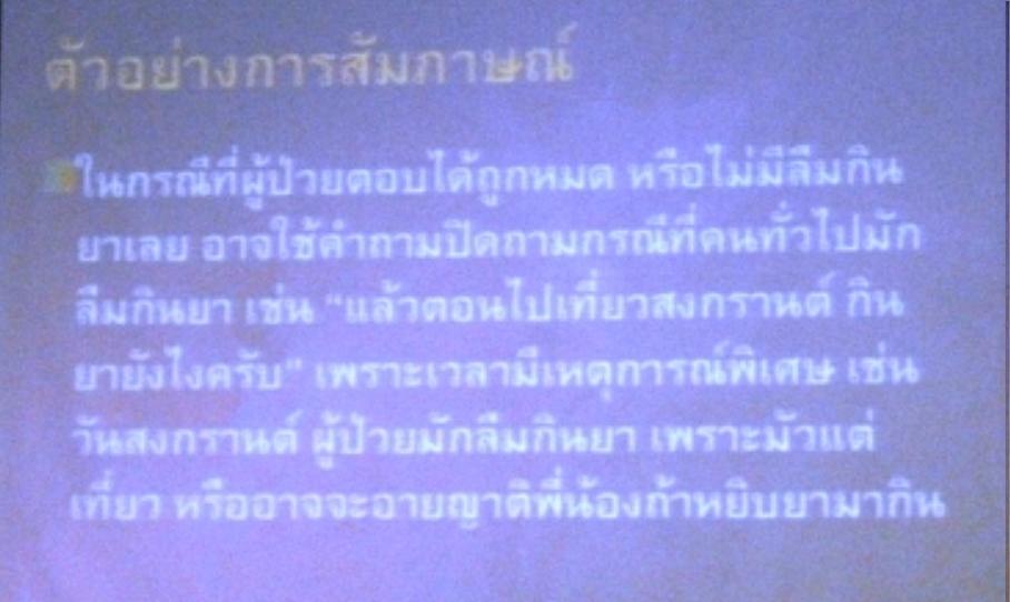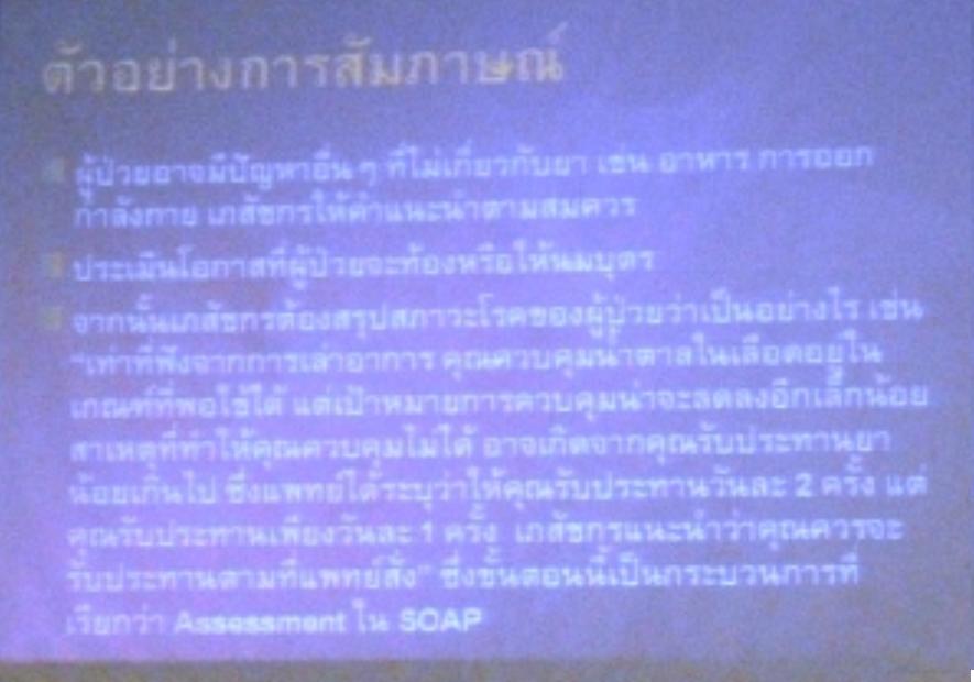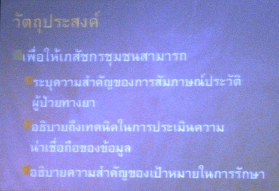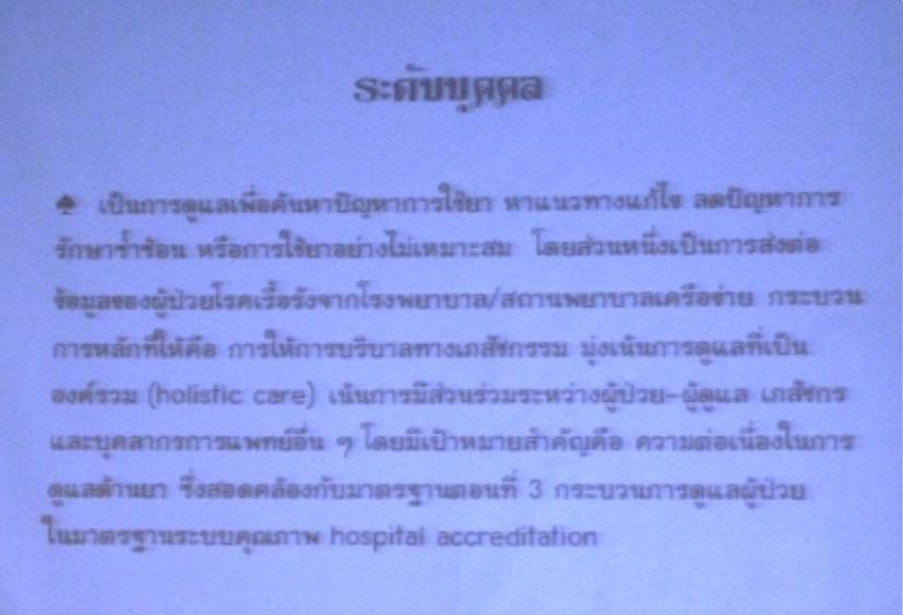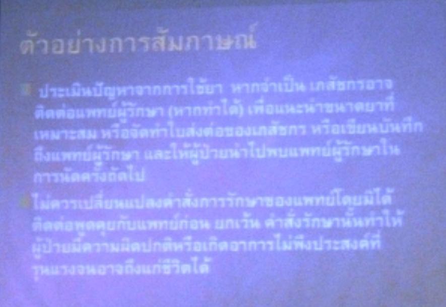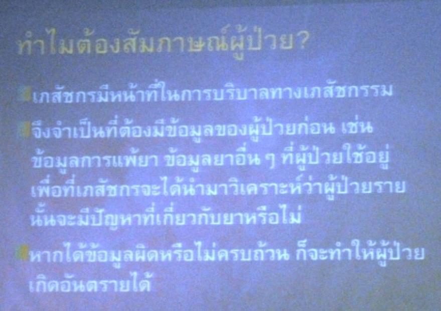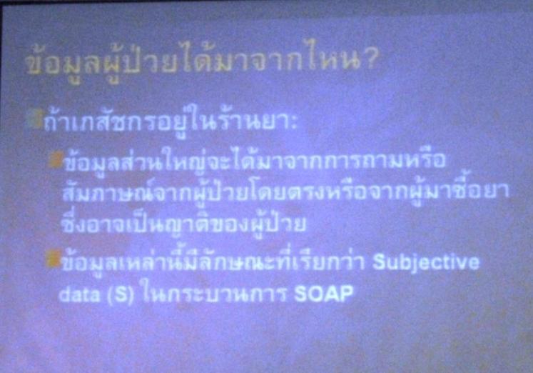 เนื้อหาที่บรรยาย วิทยากร ดึงมาจากงานวิจัยที่เคยทำ ทั้งจากต่างประเทศ และไทย ฟังแล้วก็ได้ข้อคิดเพิ่มเติม พร้อมทั้งฉายวิดีโอของร้านยาสมัยใหม่ในต่างประเทศให้ชม