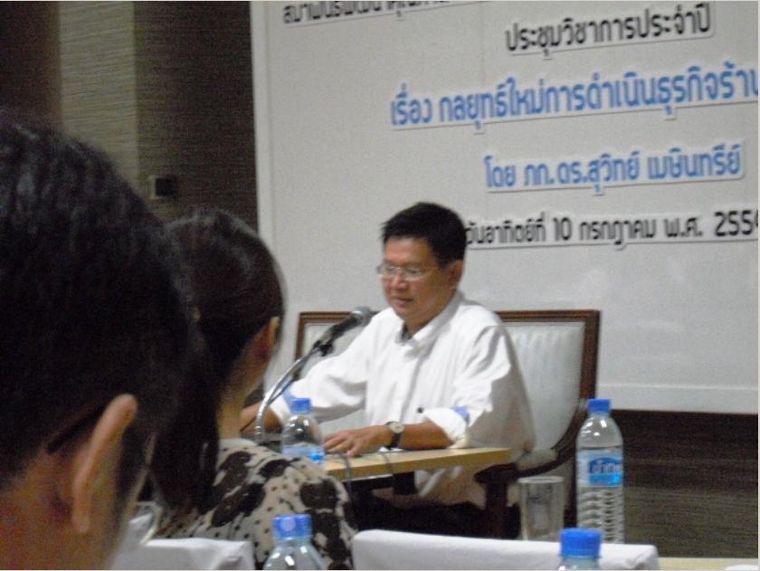 3. เรื่องต่อไป เป็นเรื่อง Price กับร้านยา เป็น หัวข้อการบรรยายหนึ่ง ที่สมาคมฯ Add เข้ามา โดยเห็นว่า ตลอดเวลาที่สมาคมจัดประชุมวิชาการ เนื้อหาที่มาบรรยาย จะเน้นไปกับความรู้ทางคลินิก ความรู้ทางเภสัชภัณฑ์ใหม่ๆ แต่ความรู้ด้านการพัฒนาในร้านยา ยังขาดไป
