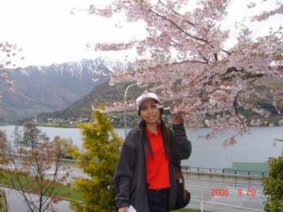 เหมือนซากุระที่ญี่ปุ่นเลย แต่ที่จริงแล้วเป็นดอกบอสซั่มที่หน้าโรงแรมในเมือง Queen town ของเกาะใต้