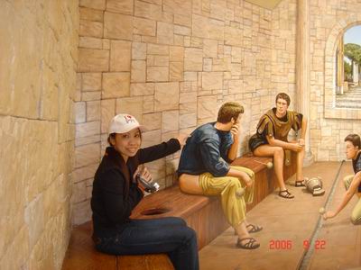 นี่เป็นห้องหนึ่งใน Puzzling world ผนังด้านหนึ่งจะทำเป็นภาพ3มิติ ในรูปเป็นห้องส้วมแบบโบราณมีที่ให้เราเข้าไปนั่งถ่ายภาพแล้วดูเหมือนกับว่าเราเป็นส่วนหนึ่งของภาพนั้น