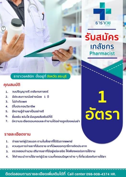 ตำแหน่ง เภสัชกร 1 อัตรา