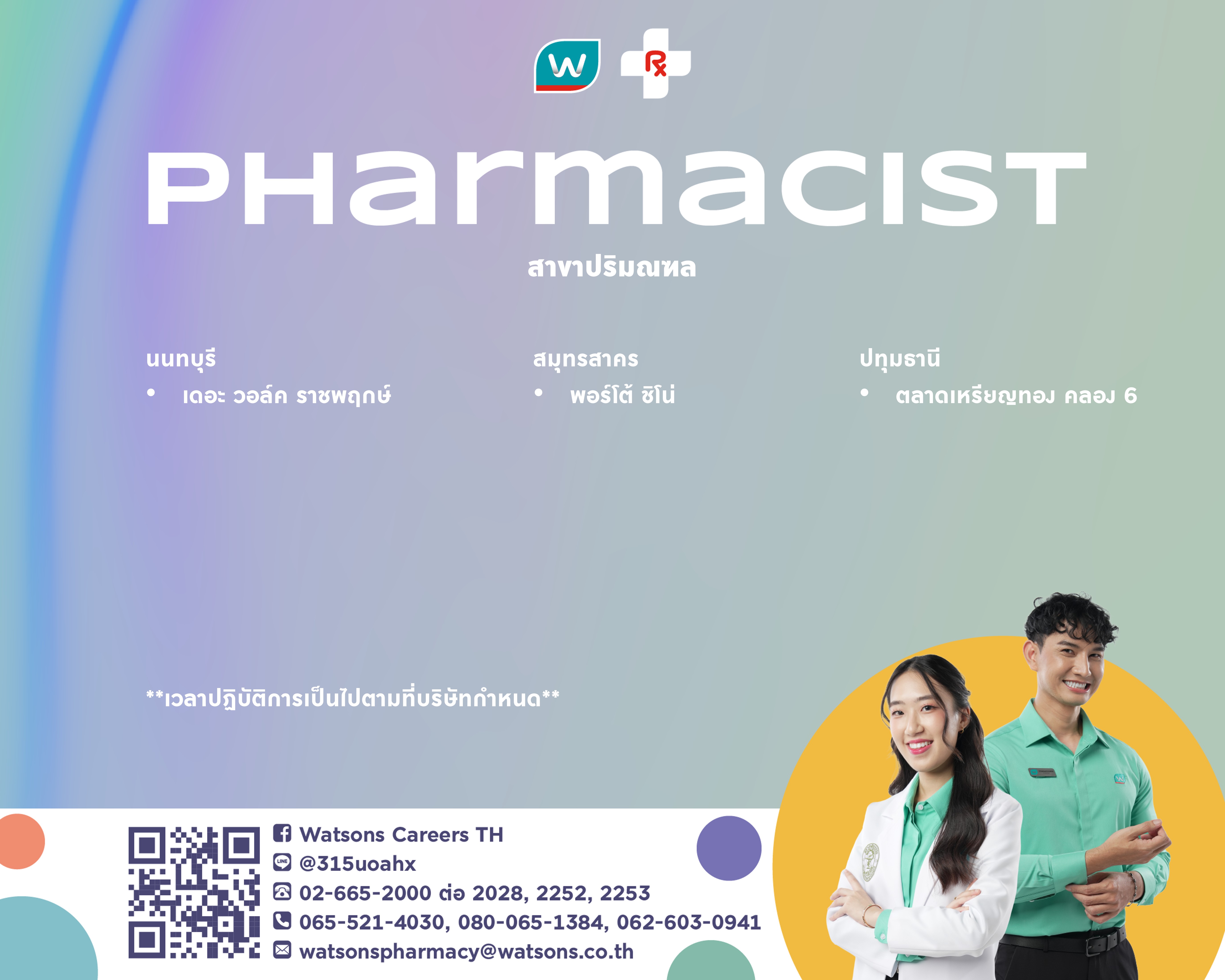 WatsonsPharmacyThailandMobile: 065-521-4030, 080-065-1384, 062-603-0941 Tel: 02-665-2000 ext.2252, 2028, 2253 E-mail: watsonspharmacy@watsons.co.th Line ID: @315uoahx