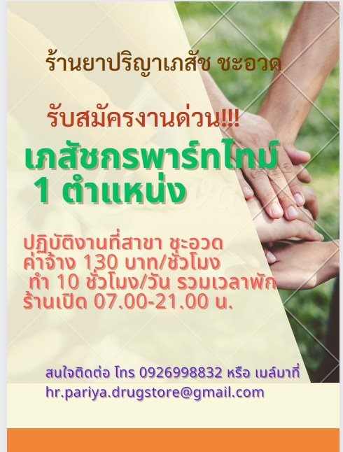 รับสมัครด่วน!! เภสัชกร พาร์ทไทม์