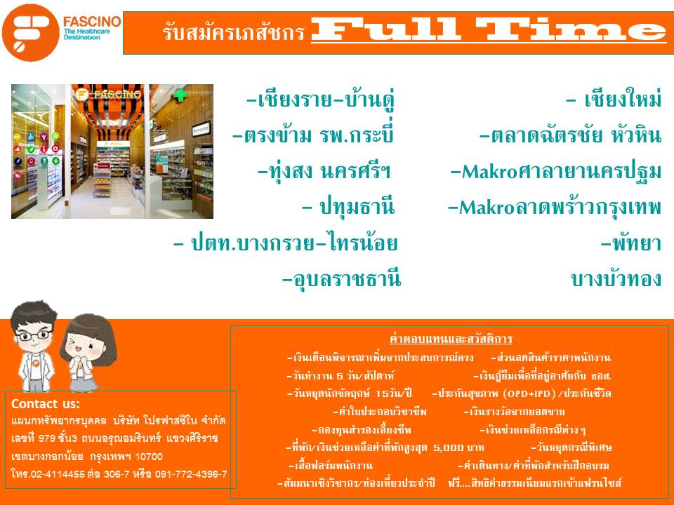 Recruitment_fascino เขียน:ร้านยาฟาสซิโน เป็นผู้นำค้าปลีกเวชภัณฑ์ยา ผลิตภัณฑ์เพื่อสุขภาพและความงาม อุปกรณ์การแพทย์ที่ครบวงจร ต้องการบุคลากรที่มีความรู้ความสามารถ มีวิสัยทัศน์มีความมุ่งมั่นในการทำงาน มาร่วมเป็นส่วนหนึ่งในทีมงานของเราและพร้อมจะเติบโตไปด้วยกัน เปิดรับสมัคร ตำแหน่งงานดังนี้ Asst Training Manager (2 ตำแหน่ง)**มีประสบการณ์ Product หรือ ด้านฝึกอบรมโดยตรง 3 ปีขึ้นไป**Product Training Specialist (1 ตำแหน่ง)**มีประสบการณ์วิทยากร และมีความรู้ในอุตสาหกรรมยา ไม่น้อยกว่า 2 ปี**Area Franchise Managerมีประสบการณ์ ผจก ร้านยา 5 ปีขึ้น สามารถเดินทางไปต่างจังหวัดได้Area Manager โซนตะวันออกมีประสบการตรง 3 ปี ขึ้นไป เภสัชกรประจำสาขาด่วน....-พัทยา สาขานำชัย-พัทยา สาขาเขาตาโล-พัทยา สาขานาเกลือ-ปตท.สุขาภิบาล2-ปตท.บางกรวย-ไทรน้อย-ตรงข้าม รพ.กระบี่ -ทุ่งสง นครศรีธรรมราช-ถนนธรรมวิถี อุบลฯ-หัวหินตลาดฉัตรไชย-Makro ศาลายา-พัทลุง*** สนใจสาขาอื่น สอบถามเพิ่มเติมได้ ***ผลตอบแทนและสวัสดิการที่น่าสนใจ... - เงินเดือนเริ่มต้น 19,000 บาท (ไม่รวมค่าประสบการณ์) - ค่าใบประกอบ 13,000 บาท - ทำงาน 5 วัน/สัปดาห์ - เงินช่วยค่าหอพัก สำหรับเภสัชกรประจำสาขาต่างจังหวัด ที่ไม่ใช่ภูมิลำเนาตนเอง - Special Project...สำหรับเภสัชกรผู้ปฏิบัติงานสาขาร้านยาฟาสซิโนในการก้าวสู่การเป็นเจ้าของธุรกิจแฟรนไชส์ร้านยาฟาสซิโน ได้รับการยกเว้นค่าธรรมเนียมแรกเข้า Franchise Fee - อื่นๆ อีกมากมาย... :)สอบถามข้อมูลเพิ่มเติมได้ที่:พี่กาญจนา/พี่นก/ 091-772-4396-7/ 091-229-0414 E-mail : hr@profascino.co.th หรือสมัครด้วยตนเองที่ สำนักงานอรุณอมรินทร์ ตามแผนที่ได้คะ
