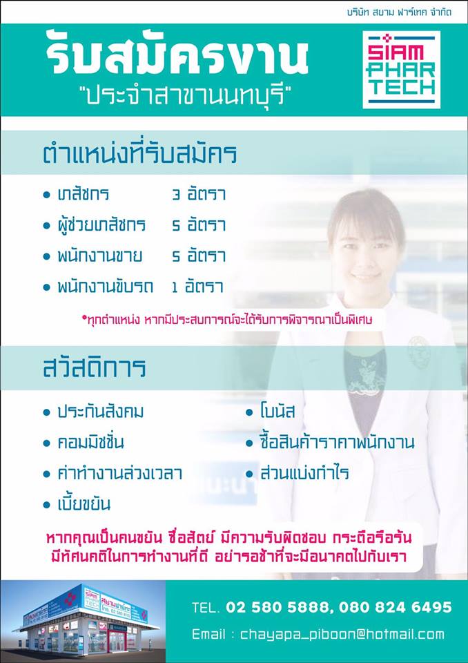 สยาม ฟาร์เทค รับสมัครเภสัชกรประจำ สาขางามวงศ์วาน