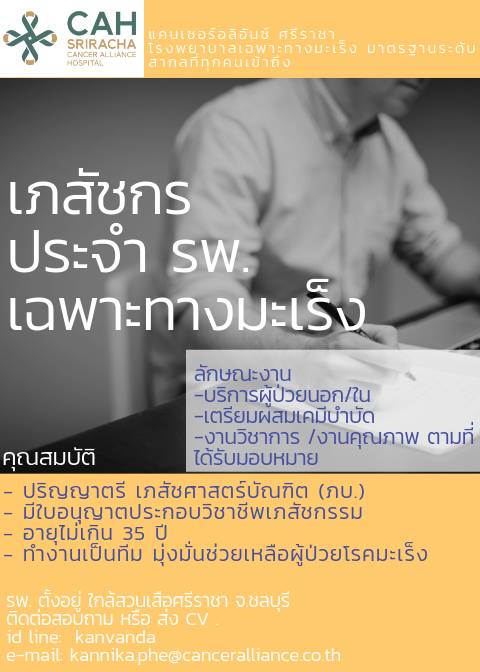 รพ.แคนเซอร์อลิอันซ์ ศรีราชา รับสมัครเภสัชกร ด่วน !!