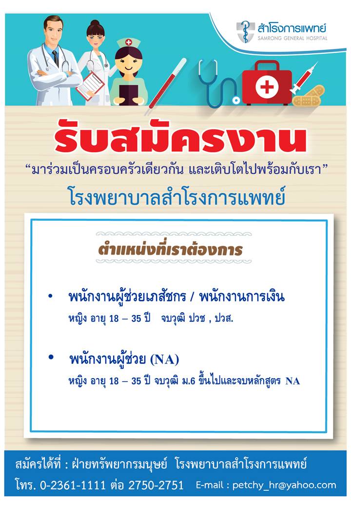 โรงพยาบาลสำโรงการแพทย์ ติดกับห้างสรรพสินค้าอิมพิเรียล สาขาสำโรง จ.สมุทรปราการ เปิดรับสมัคร