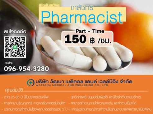 กำลังมองหาผู้ร่วมงานตำแหน่ง Pharmacist (เภสัชกร) Part-time