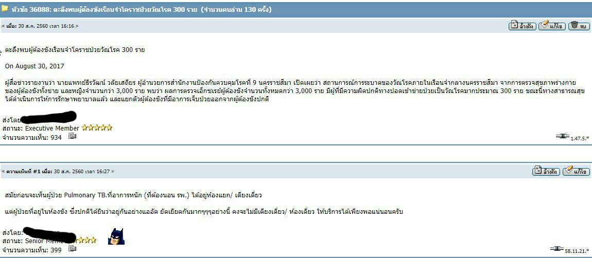 นครราชสีมา วันนี้ (30 สิงหาคม 2560) นายแพทย์ธีรวัฒน์ วลัยเสถียร ผู้อำนวยการสำนักงานป้องกันควบคุมโรคที่ 9 นครราชสีมา เปิดเผยถึงสถานการณ์การระบาดของวัณโรคภายในเรือนจำกลางนครราชสีมาในขณะนี้ว่า จากการตรวจสุขภาพร่างกายของผู้ต้องขังทั้งชาย และหญิง ที่อยู่ในความดูแลของเรือนจำกลางนครราชสีมาจำนวนกว่า 3,000 รายพบว่า ผลการตรวจเอ็กซเรย์ผู้ต้องขังจำนวนทั้งหมดกว่า 3,000 ราย พบว่ามีผู้ที่มีความผิดปกติทางปอดเข้าข่ายป่วยเป็นวัณโรคจำนวนประมาณ 300 ราย ซึ่งขณะนี้ทางสาธารณสุขได้ดำเนินการให้การรักษาพยาบาล และแยกตัวผู้ต้องขังที่มีอาการเจ็บป่วยออกจากผู้ต้องขังปกติ และขณะนี้สำนักงานป้องกันควบคุมโรคที่ 9 นครราชสีมา กำลังดำเนินการตรวจสุขภาพผู้ต้องขังภายในเรือนจำอื่นๆ ในพื้นที่รับผิดชอบทั้งหมด เพื่อป้องกันการแพร่ระบาดของเชื้อวัณโรคด้วย