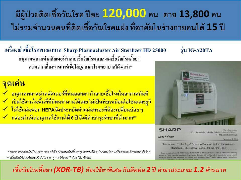 ฆ่าทำลายเชื้อวัณโรค ลดการเกิดเชื้อวัณโรคดื้อยา ด้วยการใช้ เครื่องฆ่าเชื้อโรคทางอากาศ plasmacluster HD ในพื้นที่ทำงาน ????‍????‍????????