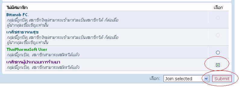 การสมัครสมาชิกกลุ่มให้เลือกที่ Tab กลุ่มสมาชิก --> เปลี่ยนกลุ่มสมาชิก
